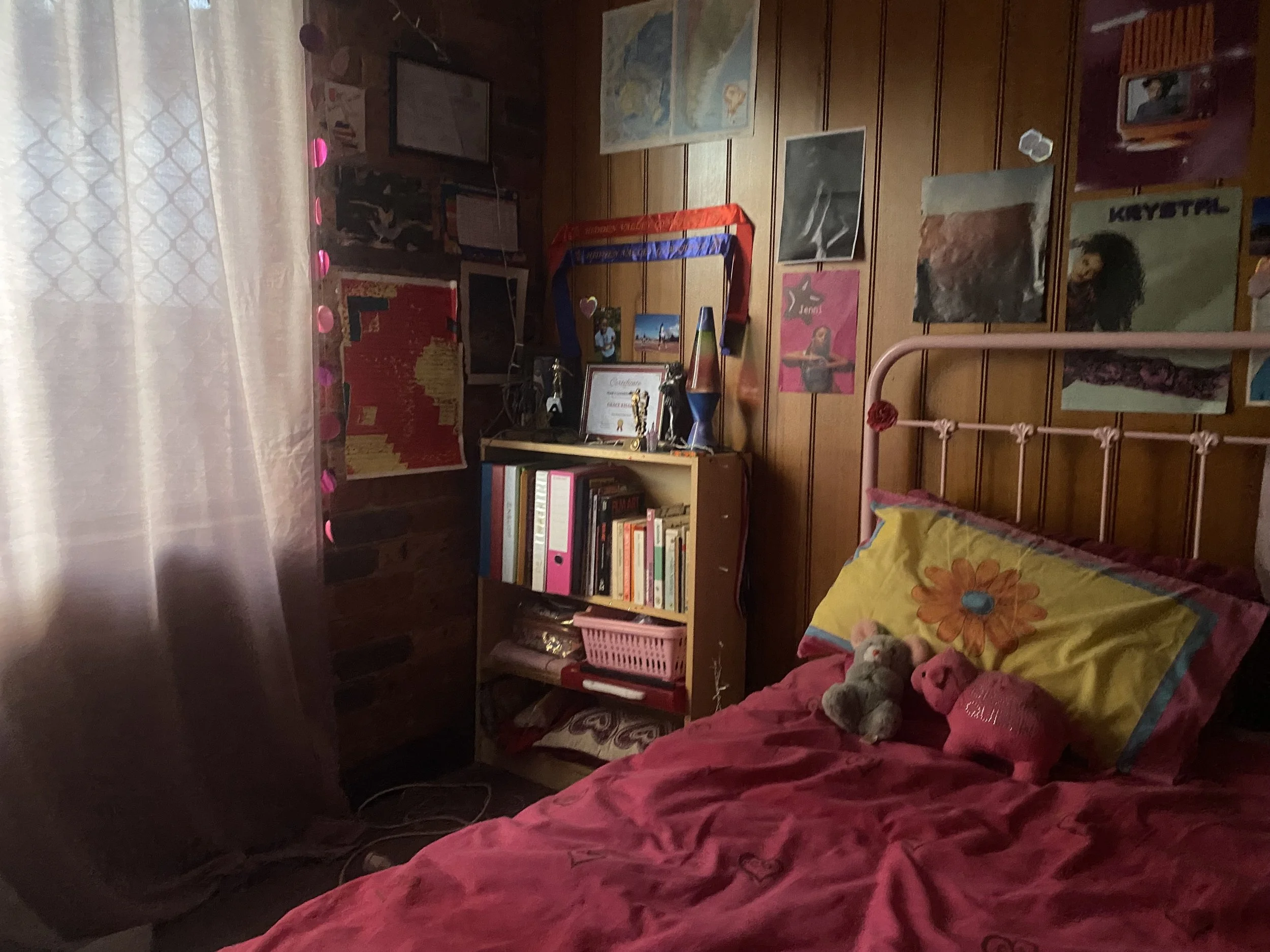 Transforming Grace’s bedroom with design assistants, Eleanor Stranieri-L’Estrange and Aurora Rymaszewski was a highlight— we captured 2000s nostalgia with lava lamps, posters and a sticker-covered vanity. One standout prop was a diamanté-covered "Drama Queen" piggy bank that quickly became a crew favourite.